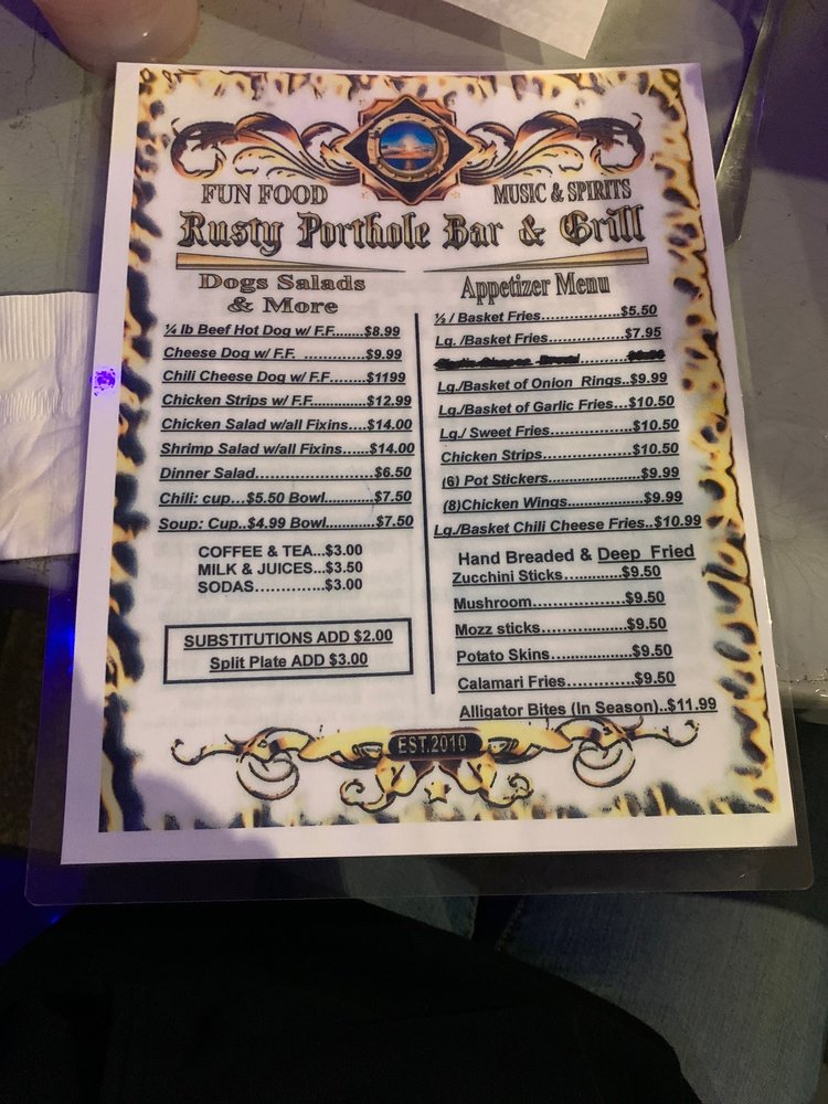 Rusty Porthole truly stands out for its commitment to inclusivity, featuring ADA-compliant facilities and a welcoming environment for families and pets alike. Come for the food, stay for the ambiance!